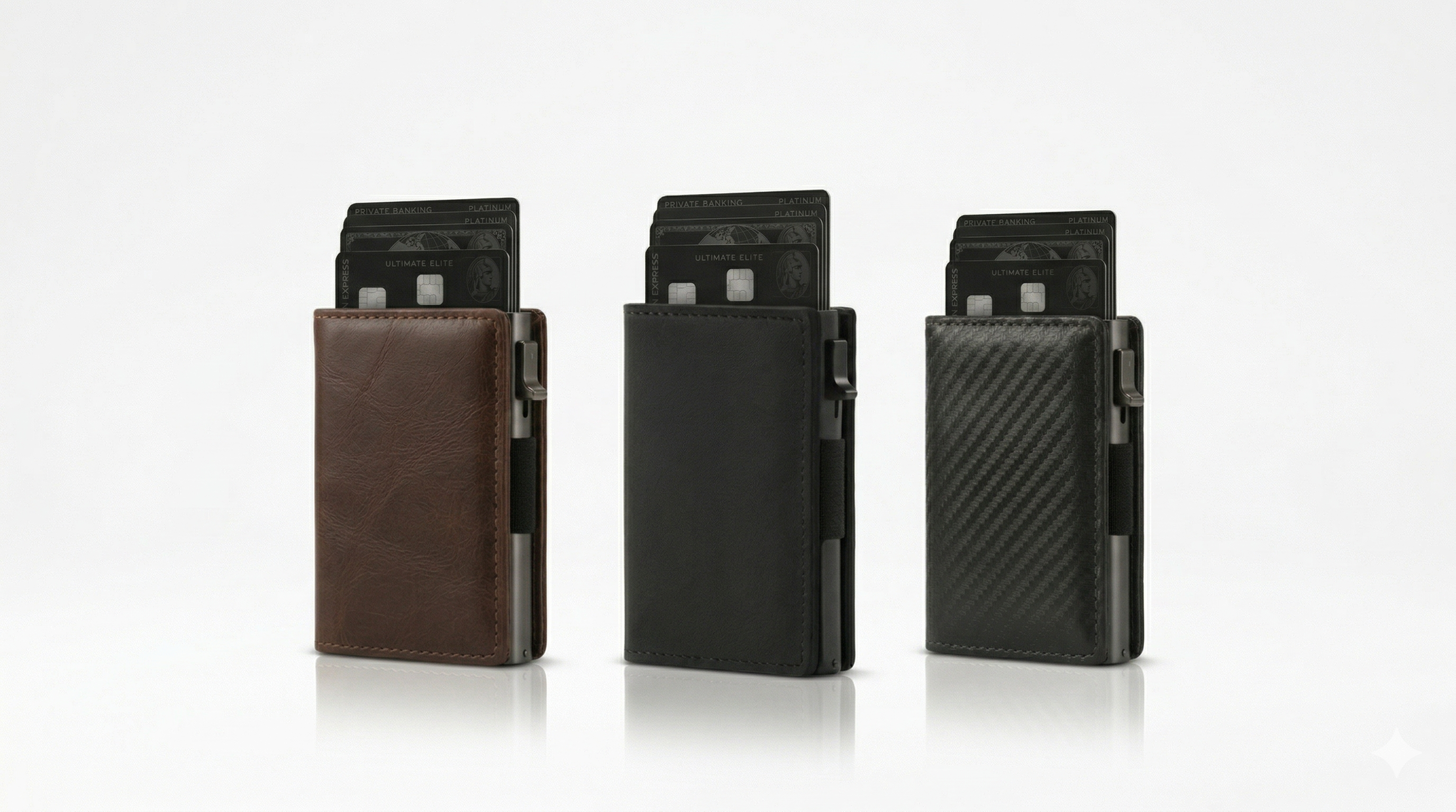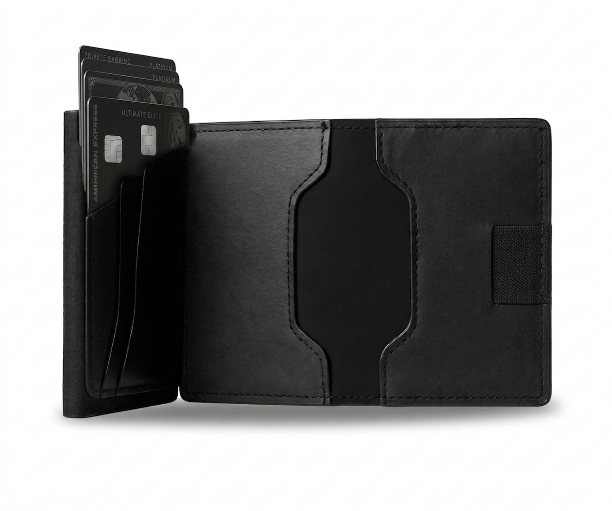 "Qualité top, matériaux solides. Le bouton éjecteur change vraiment la vie — toutes mes cartes d'un seul geste. La poche pièces est un vrai plus. Je recommande."